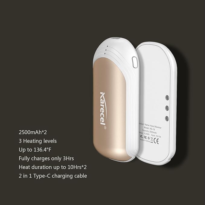 Karecel Hand Warmers Rechargeable 2 Pack, 5000mAh Hot Electric 2 in 1 Hand Warmer Portable Pocket Heater Reusable Handwarmers, Best Electronic Gifts for Men Women Kids, Hunting, Golf, CampingB0CGS21B56