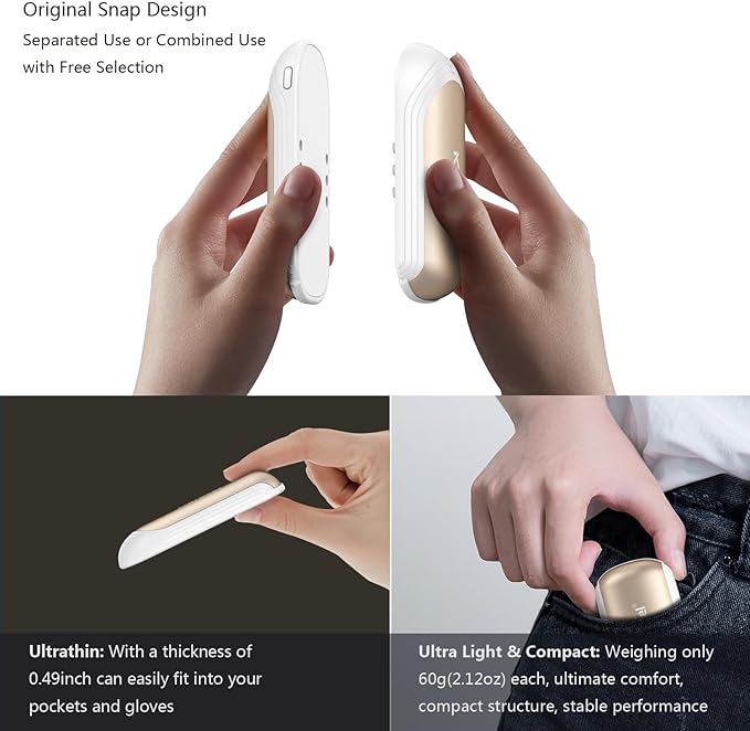 • 【2-in-1 Hand Warmers & What's in The Box】This handwarmers are also fits pockets of jacket or gloves perfectly, you can share this 2in1 handwarmer with your family or friend. A quality gift packaging including 2 in 1 rechargeable hand warmers, 2 in 1 Type-C charging cable, User manual and 24/7 customer support service.