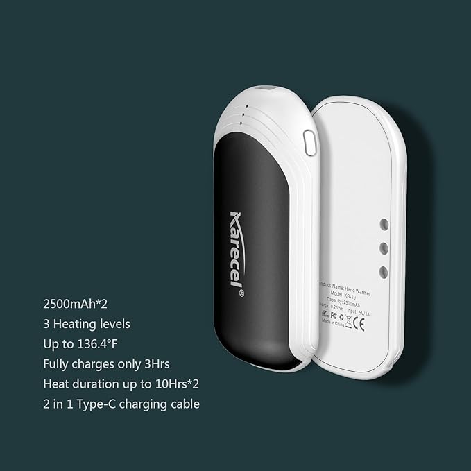 - 【2-in-1 Hand Warmers & What's in The Box】This handwarmers are also fits pockets of jacket or gloves perfectly, you can share this 2 in 1 handwarmer with your family or friend. A quality gift packaging including 2 in 1 rechargeable hand warmers, 2 in 1 Type-C charging cable, User manual and 24/7 customer support service.