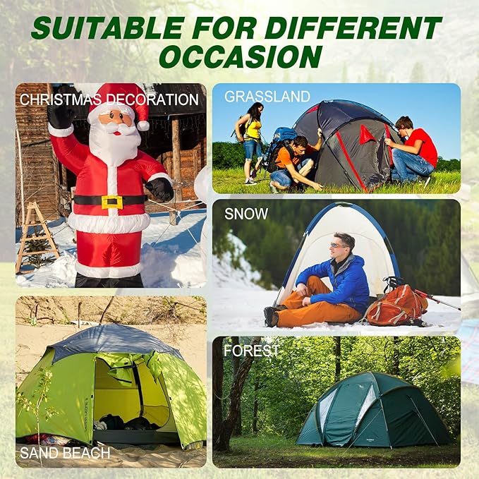 - Multi Purpose: these stakes for inflatables can be applied in various occasions, such as christmas inflatable yard decoration and streetlights, christmas santa claus and snowman, summer inflatable toys, as well as your camping tents, awnings, canopies, shelters, tarps, picnic mats, patios, gazebos, garden structures, landscapes, backyards, or even to secure your dog leashes, they are quite useful camping travel tools, convenient and portable