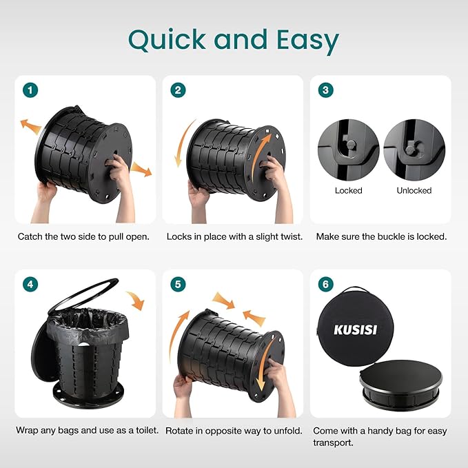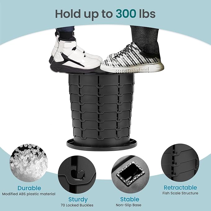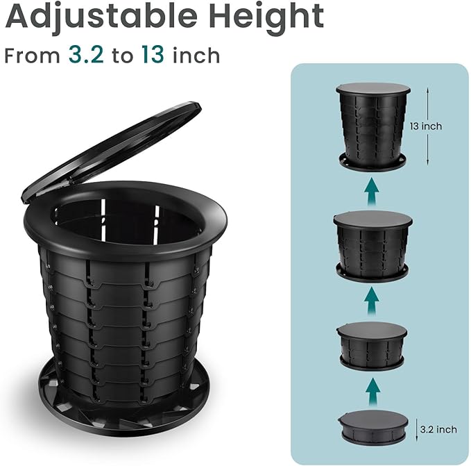 - 【ADJUSTABLE HEIGHT】Are you looking for a portable toilet that adapts to everyone's requirements? Look no further! Our KUSISI retractable portable toilet is a game-changer, featuring an innovative fish scale structure that empowers you to customize the height from 3.2 inches to 13 inches in 8 steps, it also ensures that everyone can always find their ideal and comfortable height. Say goodbye to discomfort and inconvenience.
