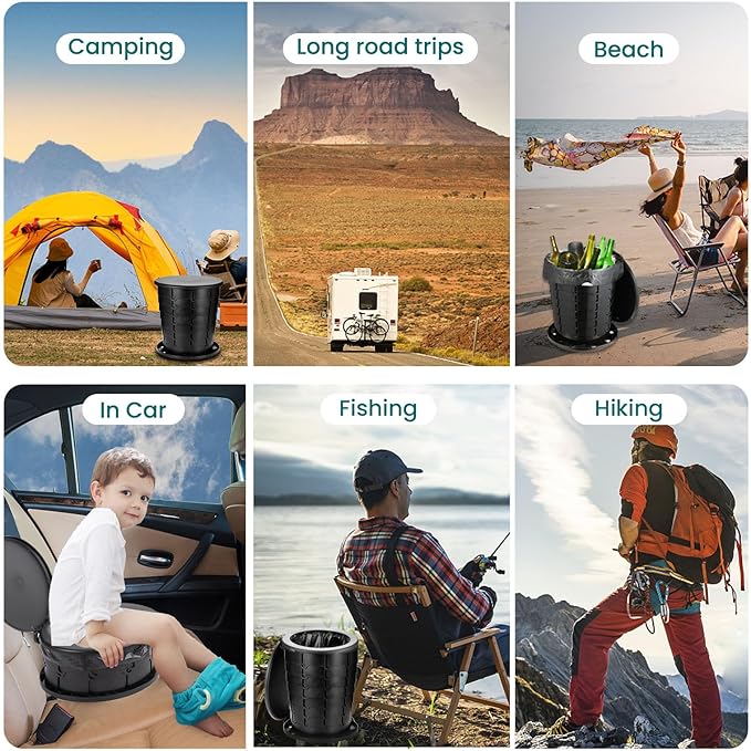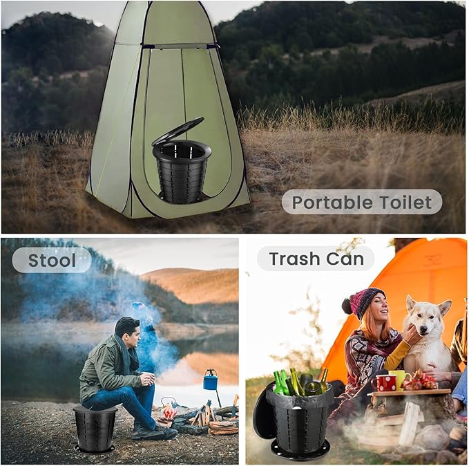 - 【MULTI-FUNCTIONS】 With a functional lid, this toilet can be not only used as a stool, a outdoor toilet, a travel toilet or a trash can, but also a good portable potty for adults and kids indoor.