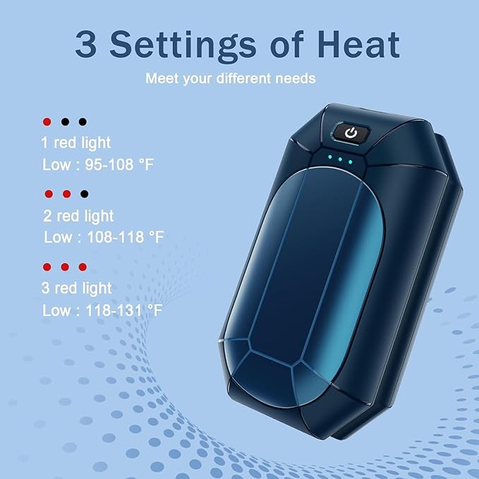 - ❤【Instant & Stable Heating】: The hot hands hand warmers adopts the most advanced chip control system, rapid heating in 1 second, 3-level temperature setting (95-108°F/108-118°F/118-131°F), double-sided heating.