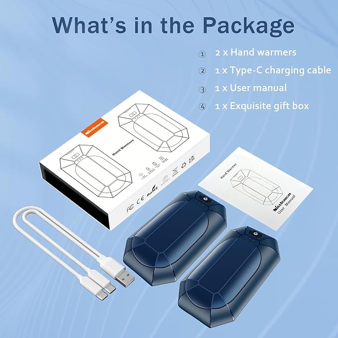 Electric Hand Warmers Rechargeable 2 Pack, Reusable Handwarmers, Portable Pocket Heater for Camping, Hunting, Golf, Gift for Men Women (Blue)