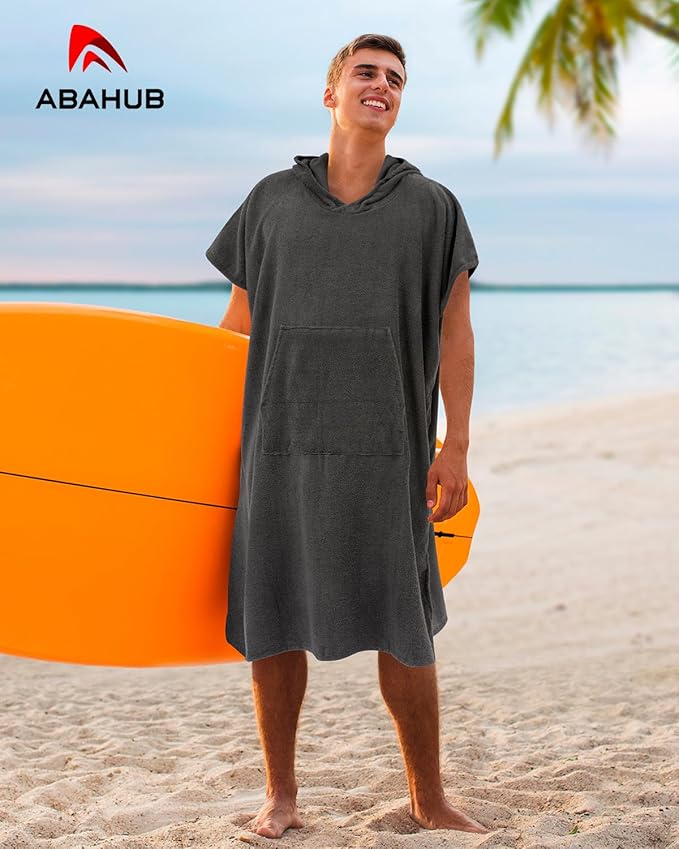 Abahub Surf Poncho Changing Robe with Hood, Thick Quick Dry Microfiber Wetsuit Changing Towel for Surfing Beach Swim Outdoor Sports Men Women, Absorbent Wearable Towel Cover Up(Grey)