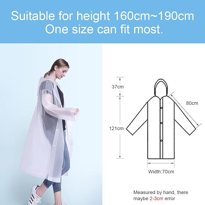 - ✅【One Size Fits All】: These EVA raincoats measure 145cm X 70cm, fully stretched, suitable for height 160cm-190cm. One size fits most adults, teens, men and women.