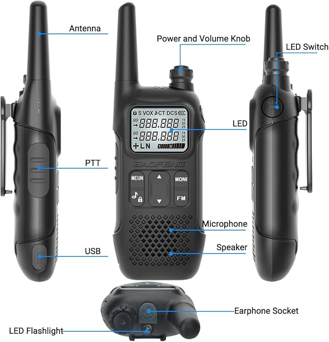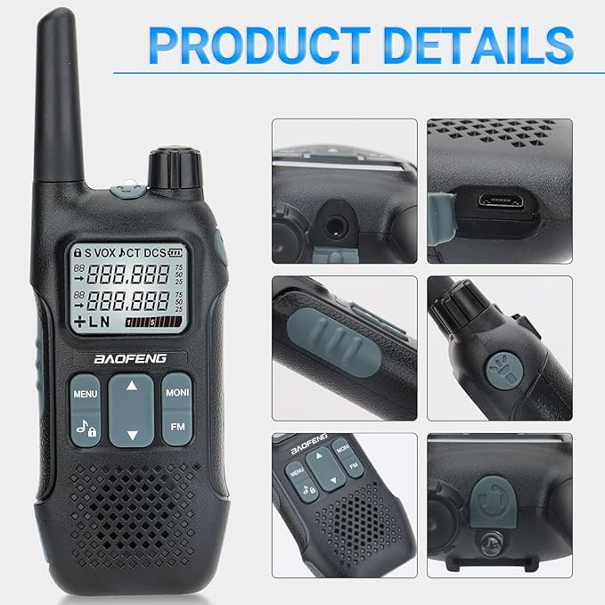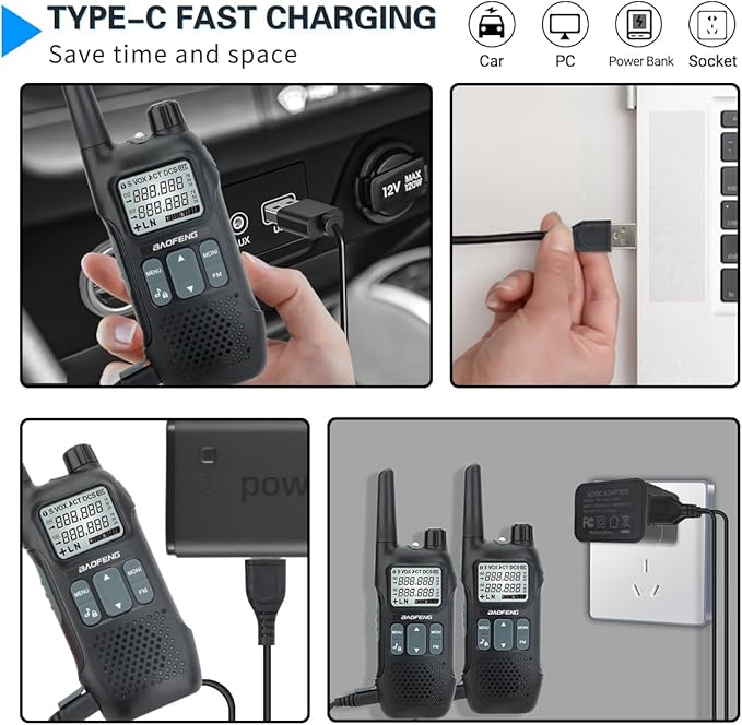 - Supports two charging methods : You can charge at any time on any device with a USB slot, such as a power bank, car, computer, etc. Each radio comes with a USB-C charging cable, American charger, and battery. It can also be easily and conveniently charged during outdoor travel and picnics.