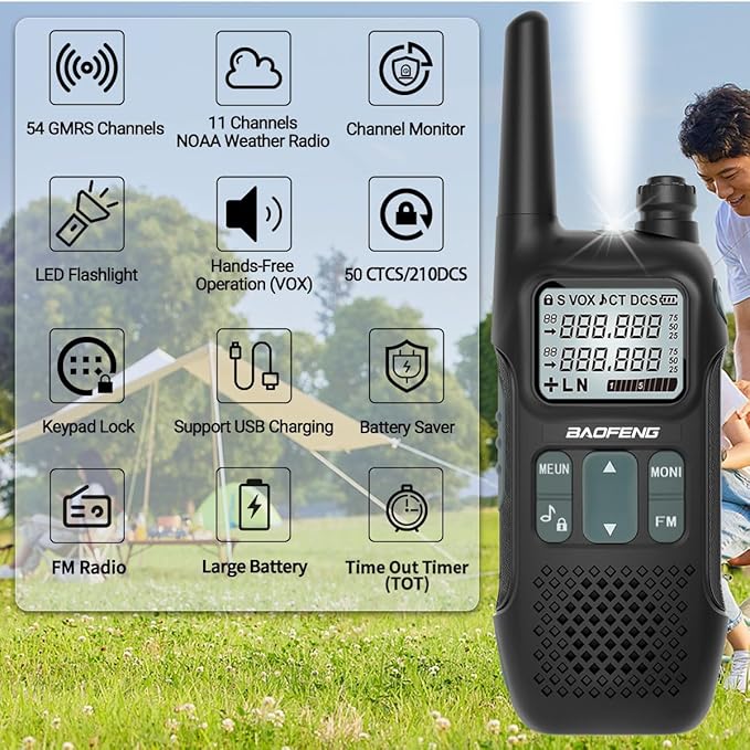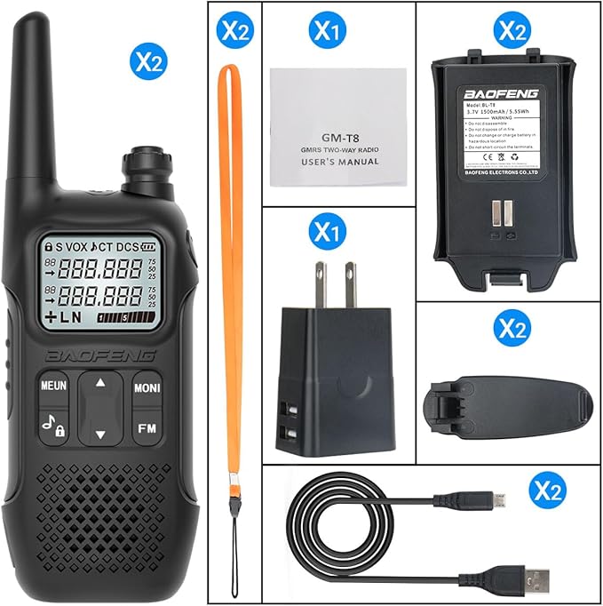 GMRS Radio BAOFENG GM-T8 Walkie Talkies Long Range, Rechargeable Walkie Talkie for Adults,Portable Ham Radio Handheld with NOAA Weather Flashight VOX USB-C Two Way Radio(2 Pack)
