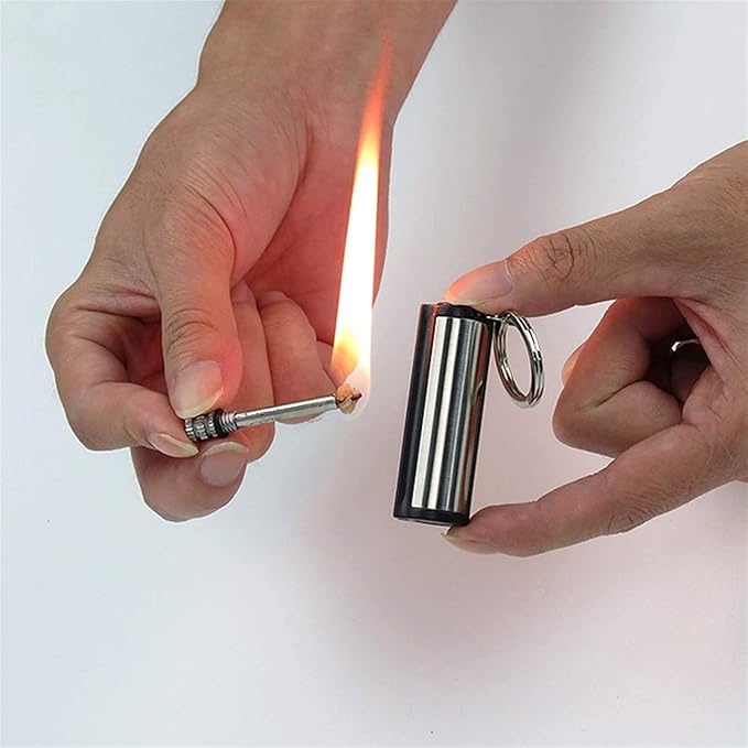 Fire Starter Lighter Waterproof Flint Match Outdoor Camping Permanent Metal Matchstick with Keychain(Without Fluid)