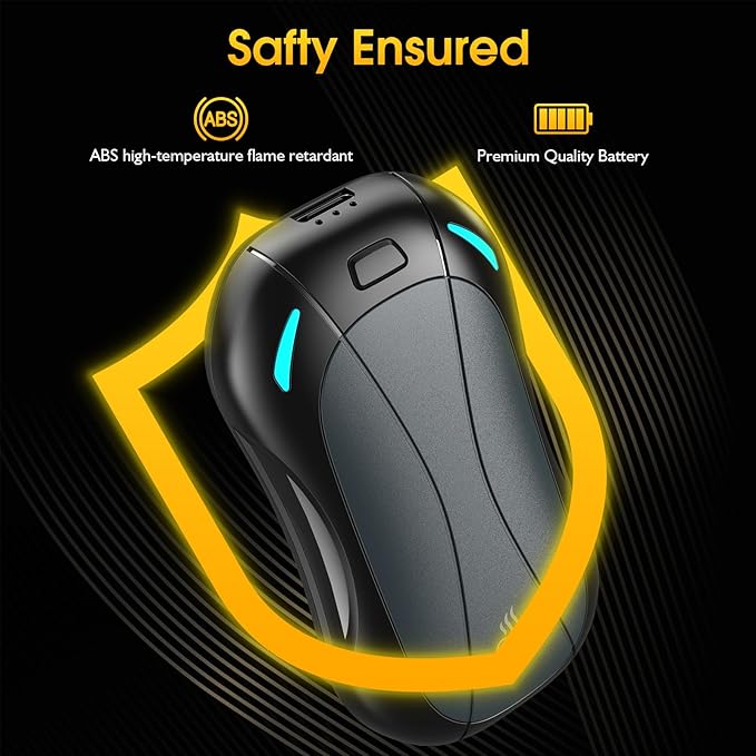 - [Safe and Durable] This hand warmer is made of high quality ABS high temperature flame retardant and oxygenated aluminium alloy material, including over-current, over-voltage, over-heat and short-circuit protection to ensure safe and worry-free use. The smart battery indicator light flashes when charging and stays on when fully charged.