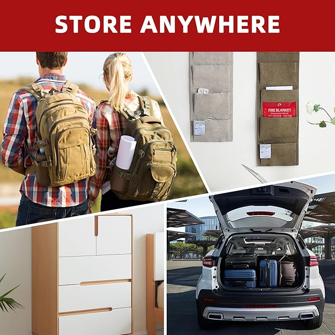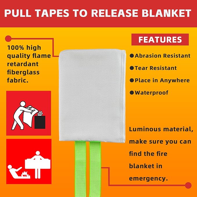 - CONVINIENT FOR DAILY USAGE: Unlike common fire extinguishers, this fire retardant blankets are effective for quickly smothering fires involving flammable liquids and clothing, and they can be used by anyone without training. Fire resistant blanket is easy to carry and store, capable of extinguishing small fires quickly and easily with no mess. Never expire and doesn't need to be replaced.