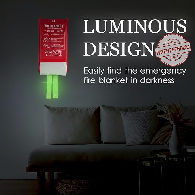 - NEW-TECH FIRE RETARDANT LUMINOUS TABS: Compared with the traditional black nylon tabs, we choose the unique luminous materail to made our fire retardant blanket tabs, which are not affected by high temperature, and can be easily find fire proof blanket in the darkness and pulled out easily and quickly. For initial use, you need to place it under a light source for 24 hours before the luminous function can be used.