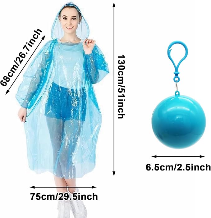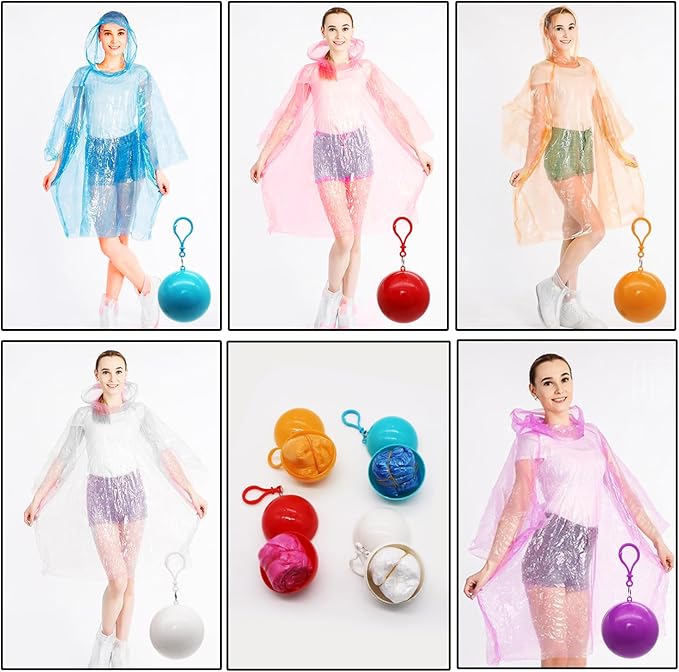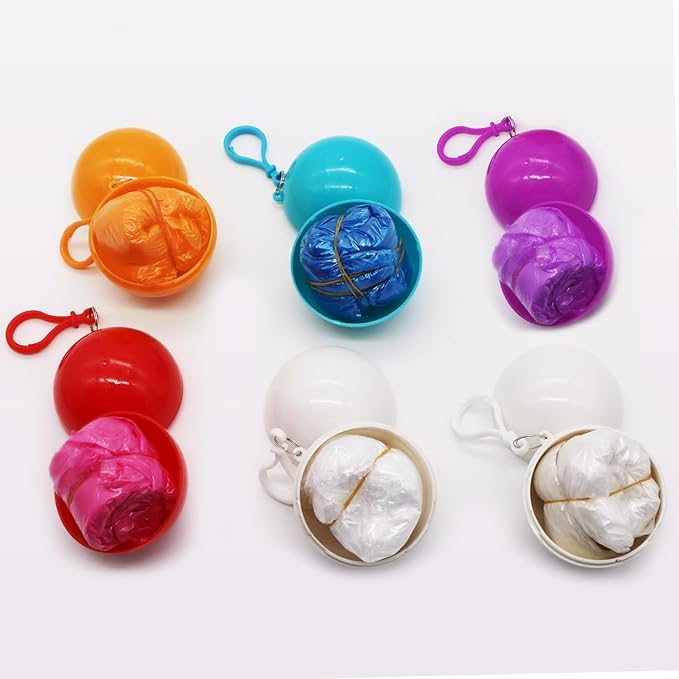 - 【5 Colors to Choose】Comes with 5 color raincoat balls, inside the ball is a disposable raincoat of the corresponding color. (1 piece of red, sky blue, orange, purple, 4 pieces of white)