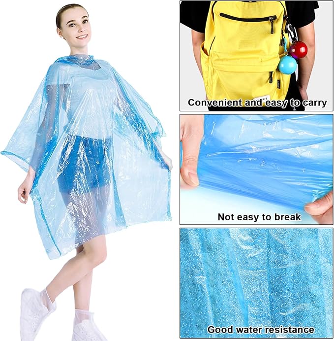 - 【Multiple Usages】Unisex portable rain poncho are suitable for carrying and emergency rain protection. Suitable for camping, hiking, mountaineering, outdoor sports and amusement parks. When you go out, you can hang it on your backpack or body as a decoration, and take it out.
