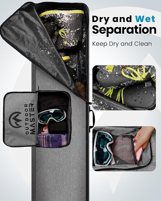 OutdoorMaster Snowboard Bag - 900D Water Resistant Snowboard Travel Bag with Shoulder Strap, Foldable Storage Design