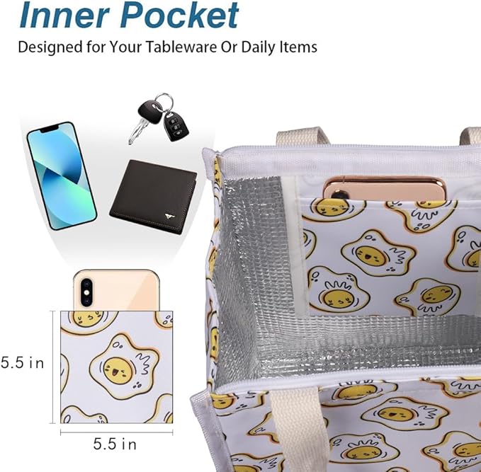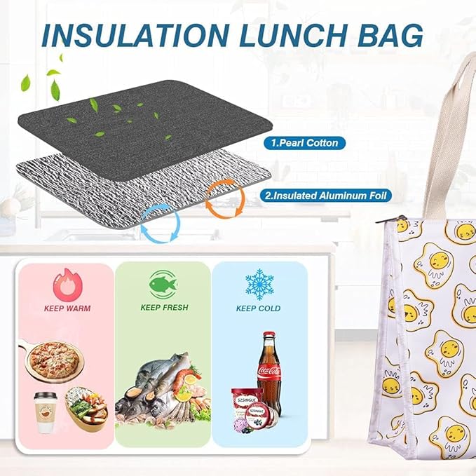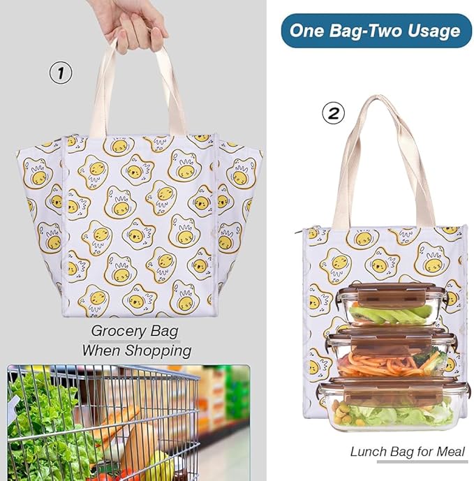 - INSULATED & FOOD-GRADE MATERIAL: The reusable lunch tote bags are constituted with oxford and aluminum foil, which is known for its excellent air isolation and temperature retaining, keeping your food cold/warm for hours. Tight stitching without tearing, durable and sturdy. Can Keeps your food warm or cold for hours well.
