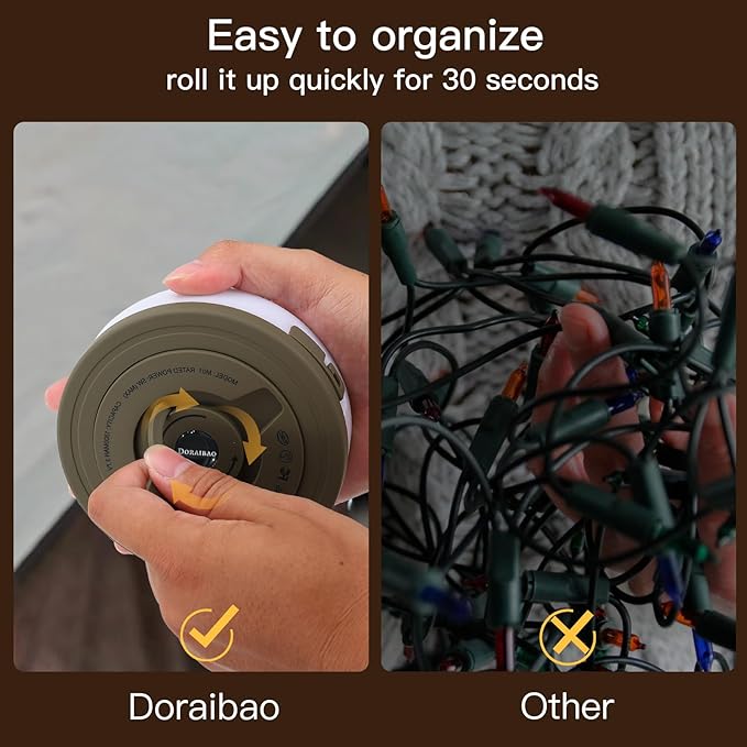 - ✔【Easy to Store】Are you still feeling worried about how to store the messy light strip after using it? The upgraded outdoor camping light strip can be easily stored by quickly rotating the handle in just 30 seconds. Solved the trouble of placing light strips for you.