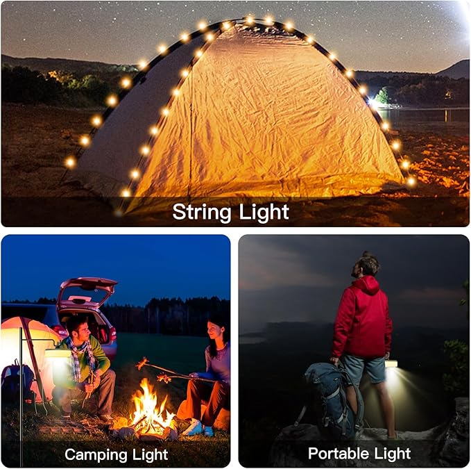 - 🎁【Perfect Gift】 This camping lantern string is an ideal choice as a precious gift for family and friends on birthdays, Valentine's Day, anniversaries, Mother's Day, Father's Day, Christmas, and New Year. Convenient camping lights are widely used, making them not only the best choice for outdoor lighting such as hiking, camping, and travel, but also adding a romantic atmosphere to gardens, courtyards, RVs, homes, festivals, parties, and more.