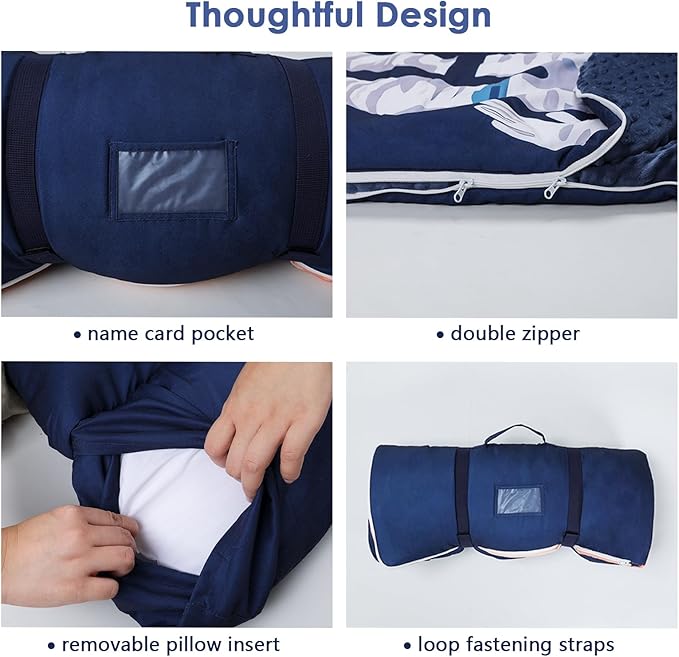 - Suitable Size and Thickness: Our child sleeping bag is 59 x 23 inches in full size; the mattress quilt is filled with 360gsm cotton and the cover is 80gsm.The pillow is 200g.Large size and thickened weight are very suitable for children's napping, bringing them an unforgettable sleeping experience.
