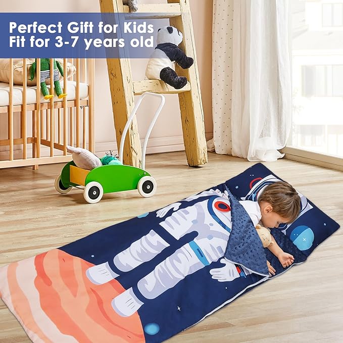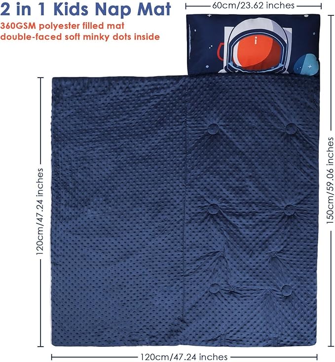 - Multi-Functional: At home, children can snuggle up next to their parents; outside, whether it is camping, nursery nap, or overnight party, travelling this nap pad is a very suitable choice; astronaut image is loved by the children, can be used as a birthday, Christmas gifts for children!
