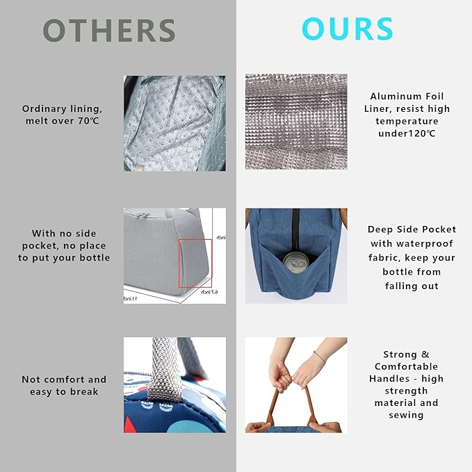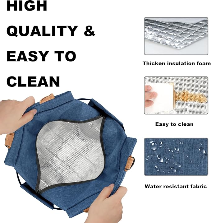 - ❤KEEP FRESH & WARM: This insulated lunch bag is made of water-resistant leakproof oxford cloth, easy clean food safe aluminum foil inner lining, and padded with thicken EPE foam will keep your food cold or thermal for 4-6 hours. Tips: Putting ice packs into the bag could keep cold for longer time.