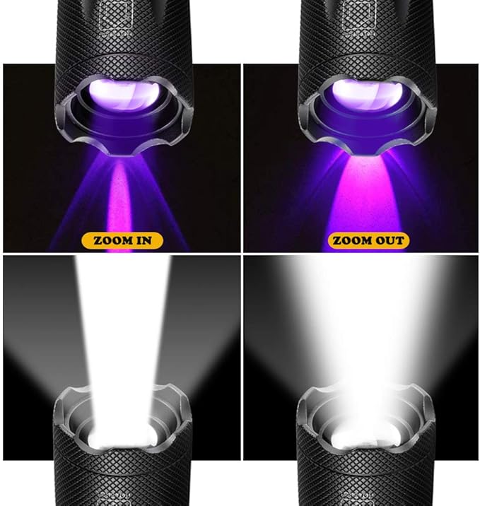 Blacklight Flashlight Kit, 2 in 1 LED UV 395nm Blacklights with 500LM Highlight, 4 Modes, Ultraviolet Torch Light for Pet Urine/Scorpion Detection/Night Fishing/Travel/Camping