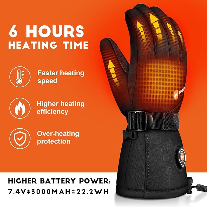 Heated Gloves for Men Women 7.4V Battery Rechargeable Heated Ski Gloves Touchscreen Waterproof Electric Heated Gloves for Winter Outdoor Work Skiing Hiking Camping