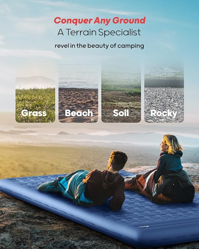 - Enhance Your Camping Sleeping Experience: The revolutionary inside design of this camping mat is intended to provide you with a cloud-like sleeping experience. Due to its improved internal structure, the inflatable pad can prevent the situation from contacting the ground even when supporting up to 800 pounds.