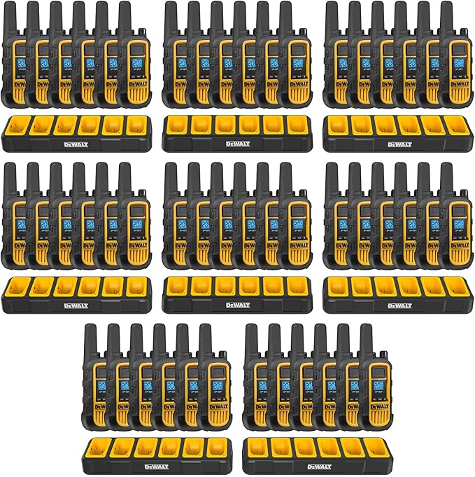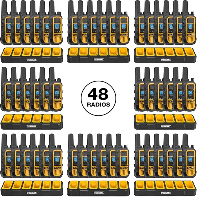 DEWALT DXFRS800 2 Watt Heavy Duty Walkie Talkies - Waterproof, Shock Resistant, Long Range & Rechargeable Two-Way Radio with VOX (48 Pack w/ 8X Gang Chargers) (8DXFRS800-BCH6)