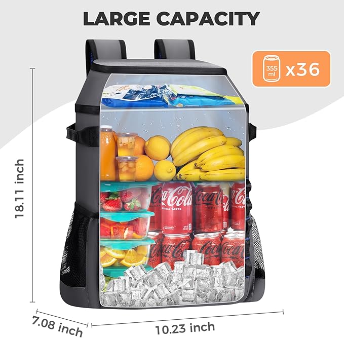 - Extra-large Capacity - The heytrip cooler backpack's spacious storage compartment can hold up to 36/54 cans of coke, providing ample space for your meals, ice drinks, beer, snacks, fruits, and other essentials. Keep your drinks icy and your food fresh while enjoying the great outdoors.