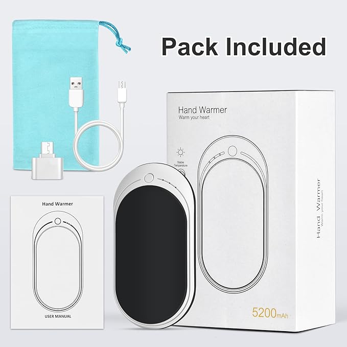 - Multi-functional Hand Warmer - 5200 mAh Lithium rechargeable battery with USB-C charging port, reusable hand warmer. It can also be used as a mobile power source, convenient, lightweight, not only charge your electronic devices at any time but also warm your hands and other parts of your body.