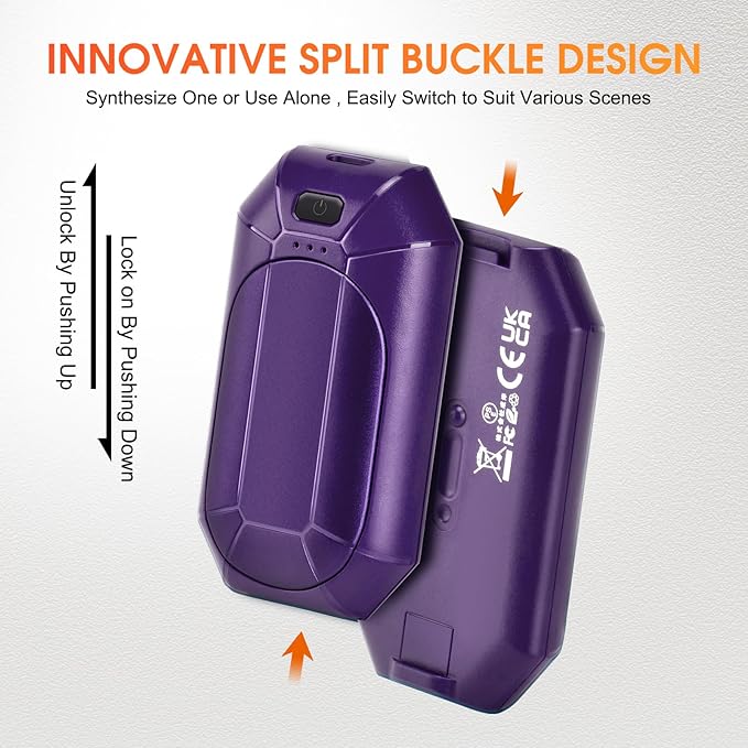 - Upgraded 2-in-1 hand warmer is rechargeable, the hand warmer has a snap button can be used individually two or combined into one, can be separated in coat pockets or hat brims as well as in gloves, etc. Made of high quality technology aviation grade aluminum ABS material, anti-vibration, explosion-proof, anti-radiation safer.