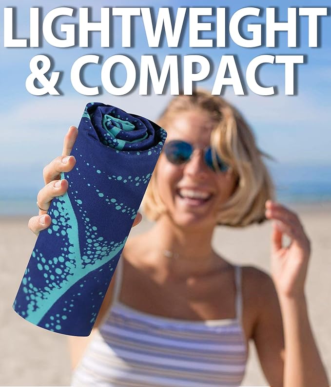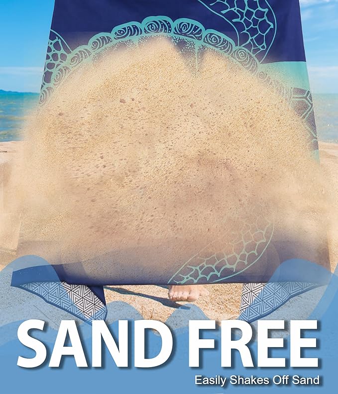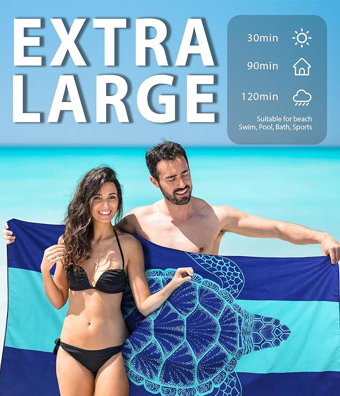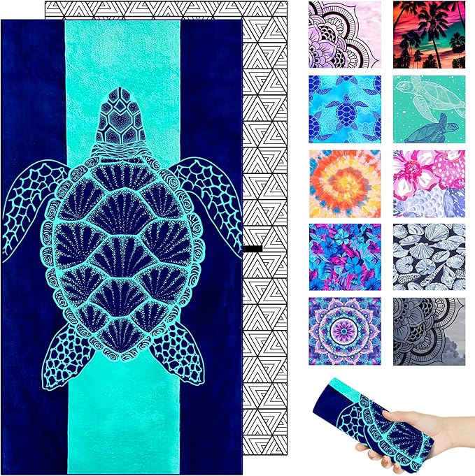 Microfiber Beach Towel–Green Striped Turtle Quick Dry Lightweight Sand Free Oversized Large Towel Accessories Travel Must Have Essentials Packable Sandproof Resistant Gift