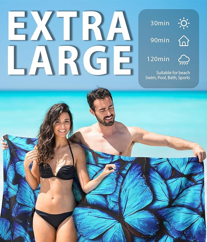 - ☀️[ Microfiber Lightweight ] High quality microfiber that absorbs water much faster than ordinary fabric! Eco-friendly, no faded and no smell. You can easily take it portable to avoid wet and cold on the beach. Multiple size options perfect for all adults and children.