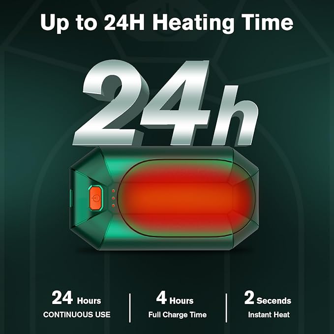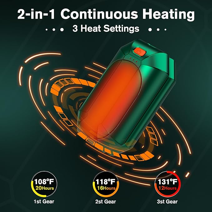 - π§γ2s Fast Heating Hand WarmerγThe hand warmer can heat up very quickly, with the fastest time reaching 3 seconds. The hand warmer will make your hands feel warm quickly in cold winter. The hand warmer can adjust the temperature independently, and each separate half provides 3levels of adjustable temperature (40Β°C/48Β°C/55Β°C)to fully meet your different needs. The hand warmer provides heat for a long time, up to 15 hours, so you don't have to worry about your hands getting cold.