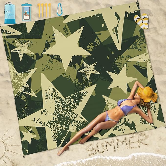 - 🌴BEACH BLANKET SANDPROOF WATERPROOF:78''×81'' fits 1-5 adults.Made with ripstop 210T polyester.The sand will fall down when you shake the blanket.The little water left behind will dry out in minutes.