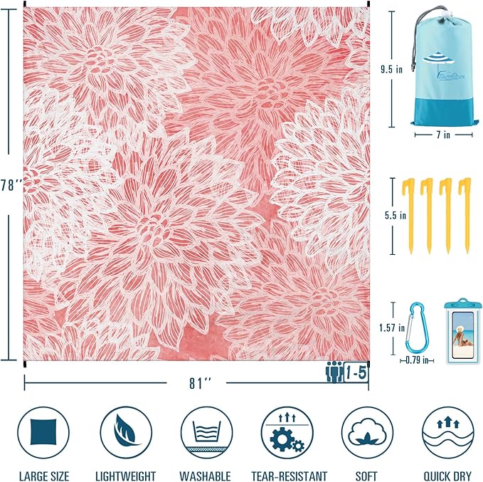 - 🌴BEACH BLANKET SANDPROOF WATERPROOF:78''×81'' fits 1-5 adults.Made with ripstop 210T polyester.The sand will fall down when you shake the blanket.The little water left behind will dry out in minutes.