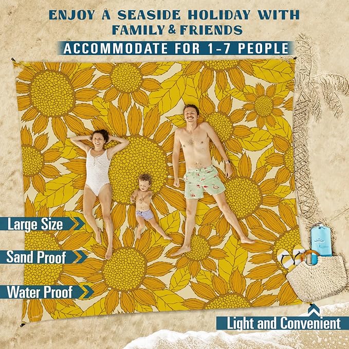 - 🏄LARGE BEACH BLANKET: Lightweight and compact after fold into a small size.Easy to carry.Washable by washing machine or hand.More professional fabrics and sturdy stitching.Small and Mighty!