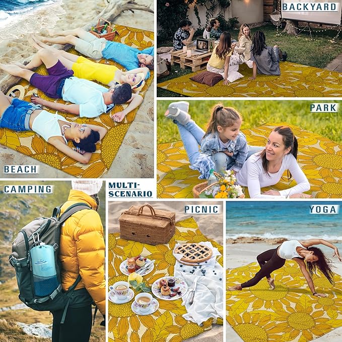 - 👨👩👧👦 TRAVEL PICNIC BLANKET:Ideal for beach vacations,park picnics,backyard party,hiking/camping.Can be used as a picnic blanket,toy mat for children,yoga mat,rain shed,sunshade,tent.Suitable for kids,couples,friends and family.