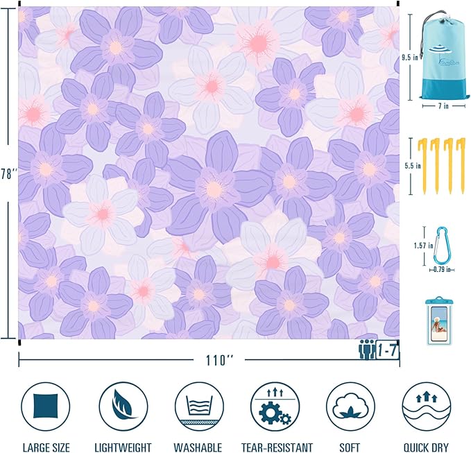 - 🌴BEACH BLANKET SANDPROOF WATERPROOF:78''×110'' fits 1-7 adults.Made with ripstop 210T polyester.The sand will fall down when you shake the blanket.The little water left behind will dry out in minutes.