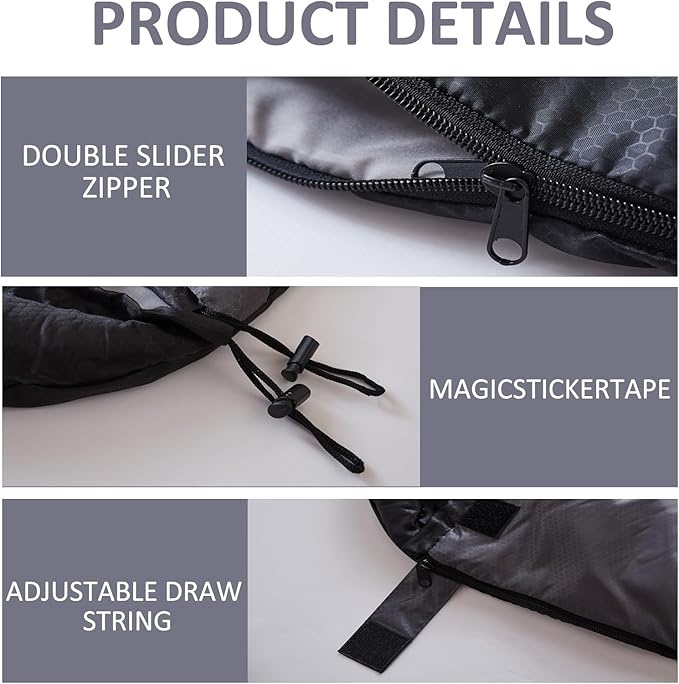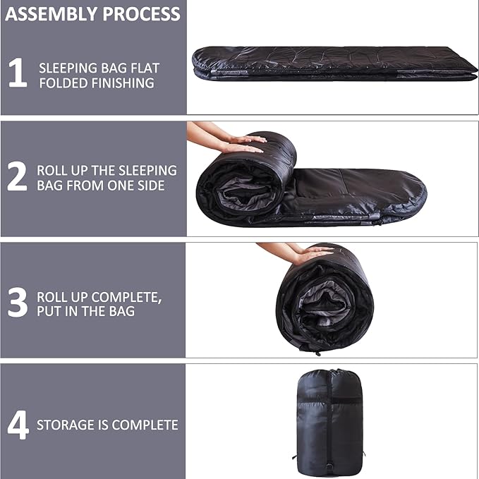 - DESIGN: It used as one large queen size sleeping bag or as 2 individual sleeping bags, you can easly finish it through untie the zipper.