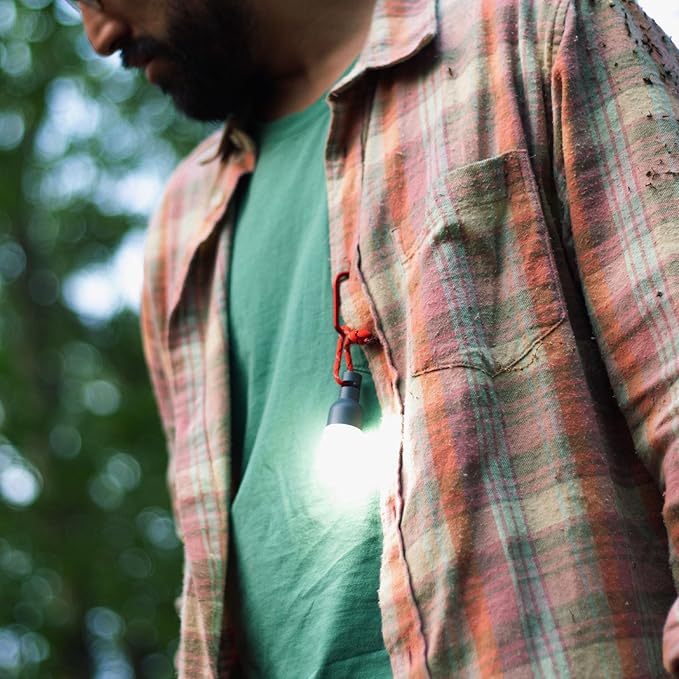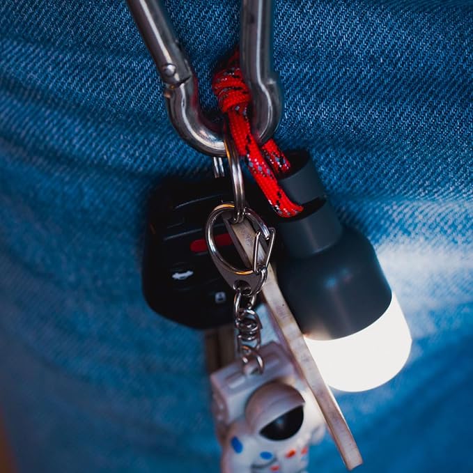 - INNOVATIVE AND INTUITIVE. The six light nodes easily snap onto the top of the included stakes or hooks onto your tent guylines so you don’t bump into them at night. Hang the lights inside your tent or on your backpack, your dog’s collar, a tree branch, wherever you can think of for reliable, long-lasting light. Simply swivel the light in either direction to turn on the lights and adjust the brightness, tie a cord on the top of the light or attach a carabiner and you have light wherever you go!