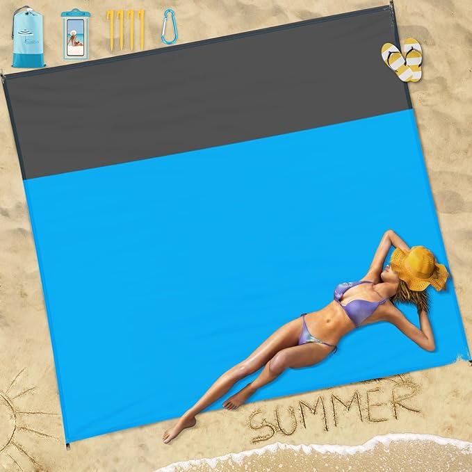 Beach Blanket Sandproof Waterproof 78''×81''1-5 Adults Oversized,Compact Lightweight Durable Beach Mat for Travel Camping Hiking Picnic BlanketB0CJ35MMVW