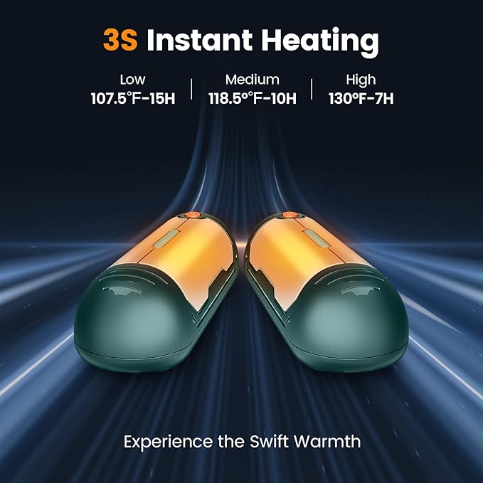 - 【CERTIFIED SAFETY & QUALITY】 Hot hands hand warmers adopt smart temp control system and latest chip to avoid overcharging, overheating, or short-circuiting. UL/CE/FCC certified, let you enjoy worry-free warmth instantly in 3S.