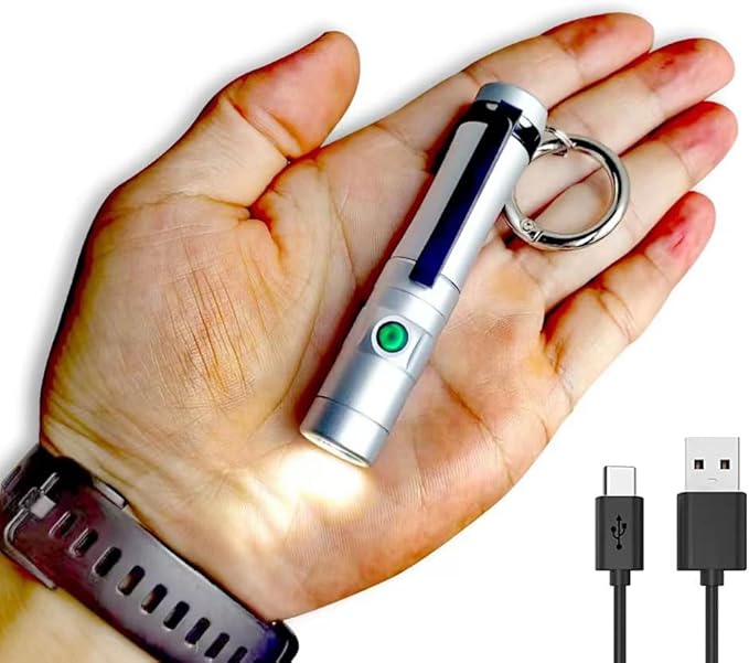Mini Rechargeable Keychain Flashlight USB C Bright Key Light Portable Pocket Flashlight for EDC,Dog Walking, Hiking,Camping,Emergency(Silver)