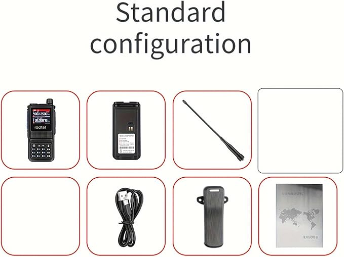 - Included Components : Walkie talkie, dual band antenna, USB-C cable, Battery