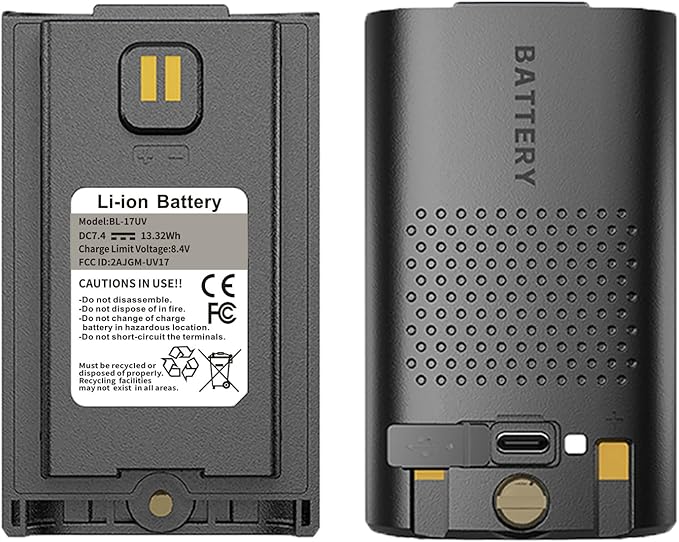 BAOFENG UV-17R Battery Original BL-17UV Enlarge 1800mAh USB-C Charging Rechargerable DC7.4V 13.32Wh Li-ion Battery