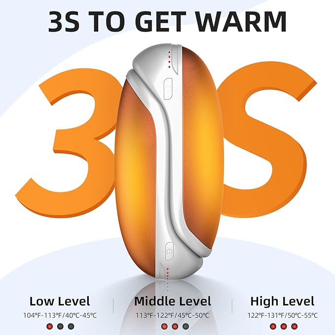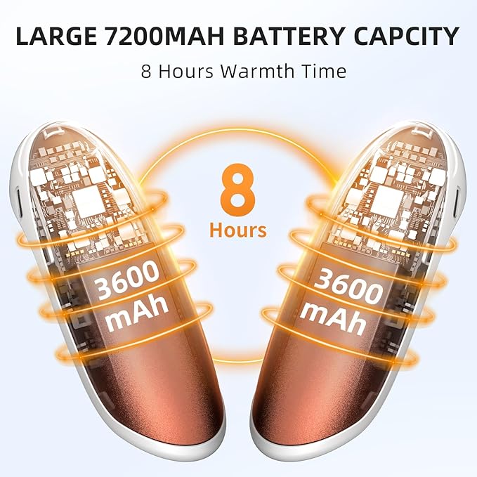 Hand Warmers Rechargeable, 2 Pack Electric Hand Warmer, 7200mAh Portable Reusable Hand Warmer, Pocket Size, 3S Fast Warming up for Heat Therapy, Prevent Chilblain, Outdoor Activity Hiking, Camping
