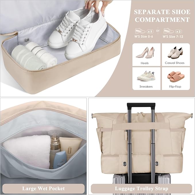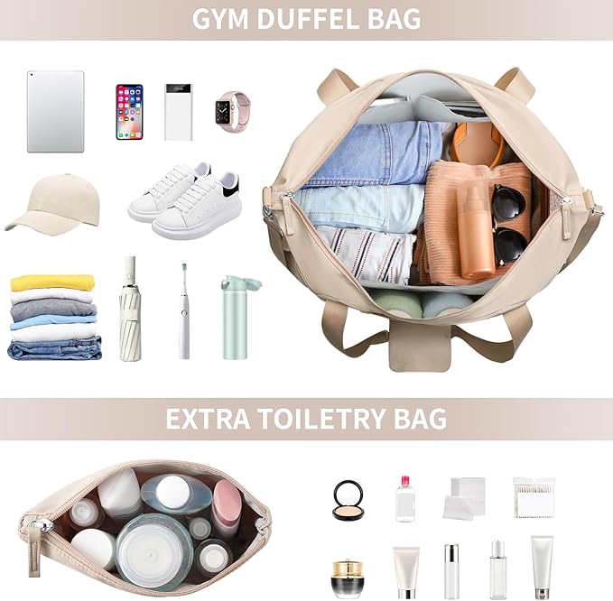 - Wide Application Gym Bag :A perfect choice for carrying all your gym and travel essentials. Use it as a luggage bag, gym sport bag, weekend bag, carry-on bag, beach bag. Our gym bag for women is suitable for both indoor and outdoor sports, such as travel, sports, weekend trips, yoga, gym, beach, business or other daily use