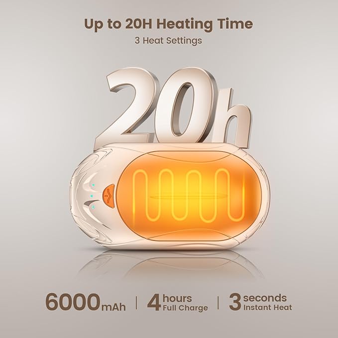 - 【Hand Warmers with Long Battery Life】Hand warmers rechargeable 2 pack with 6000mAh,a single full charge will up to 20 hours of use,2-in-1 large battery capacity electric hand warmers can meet the needs of one day's use,no longer afraid of the cold of winter.